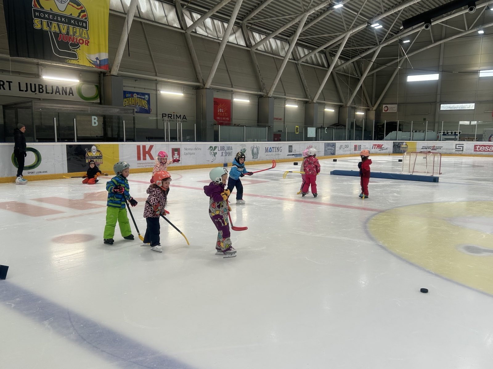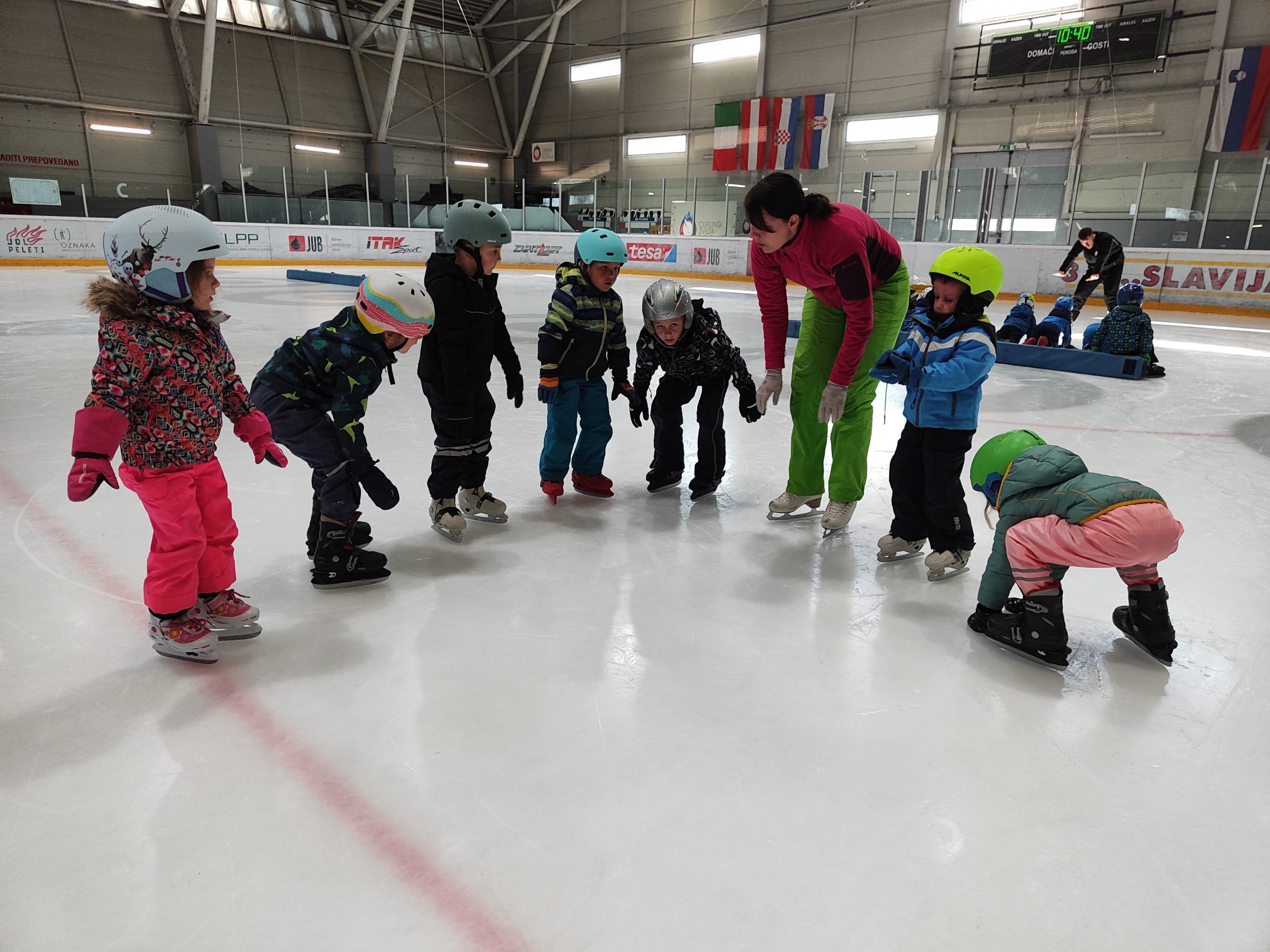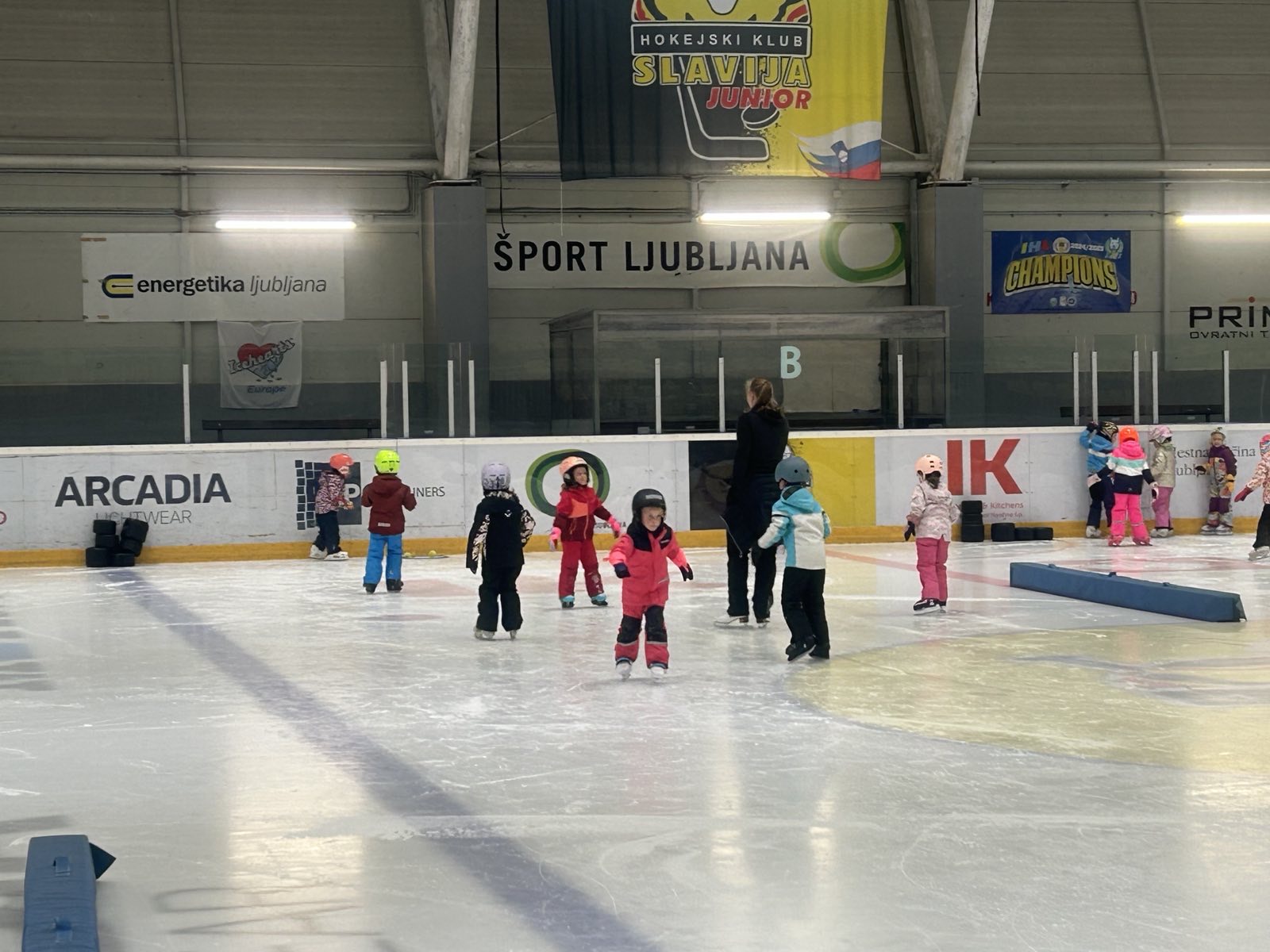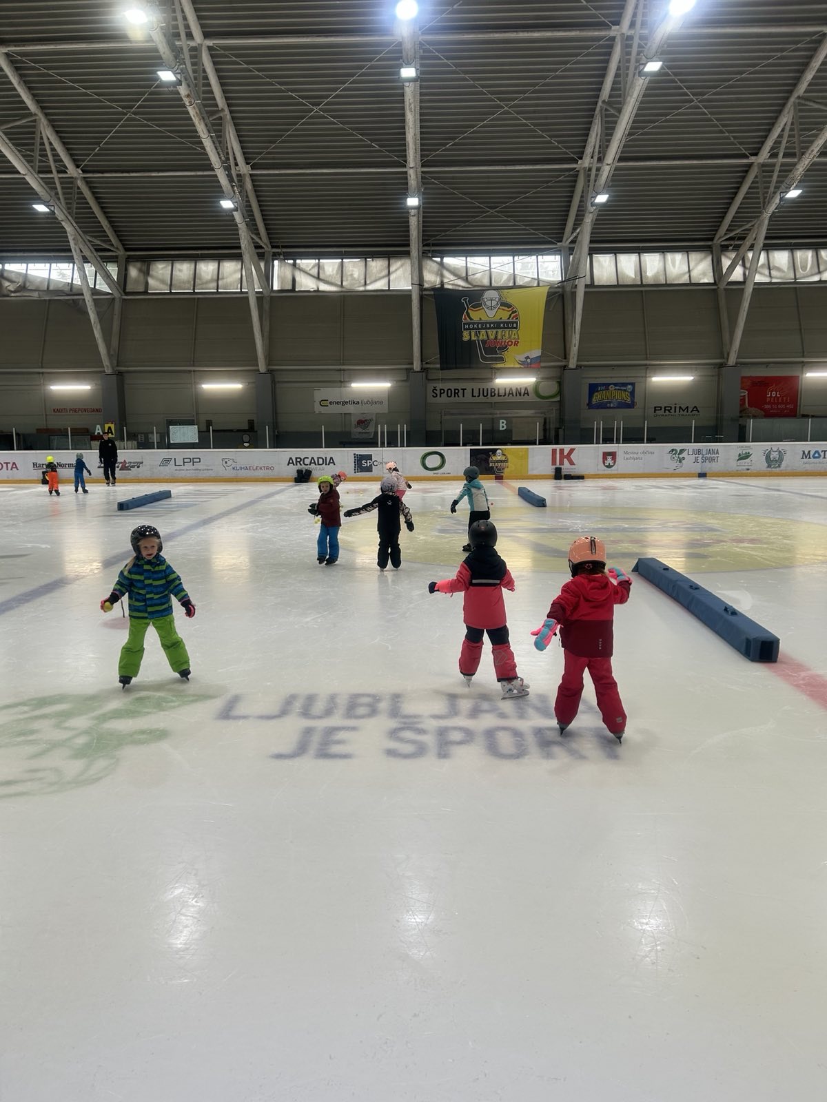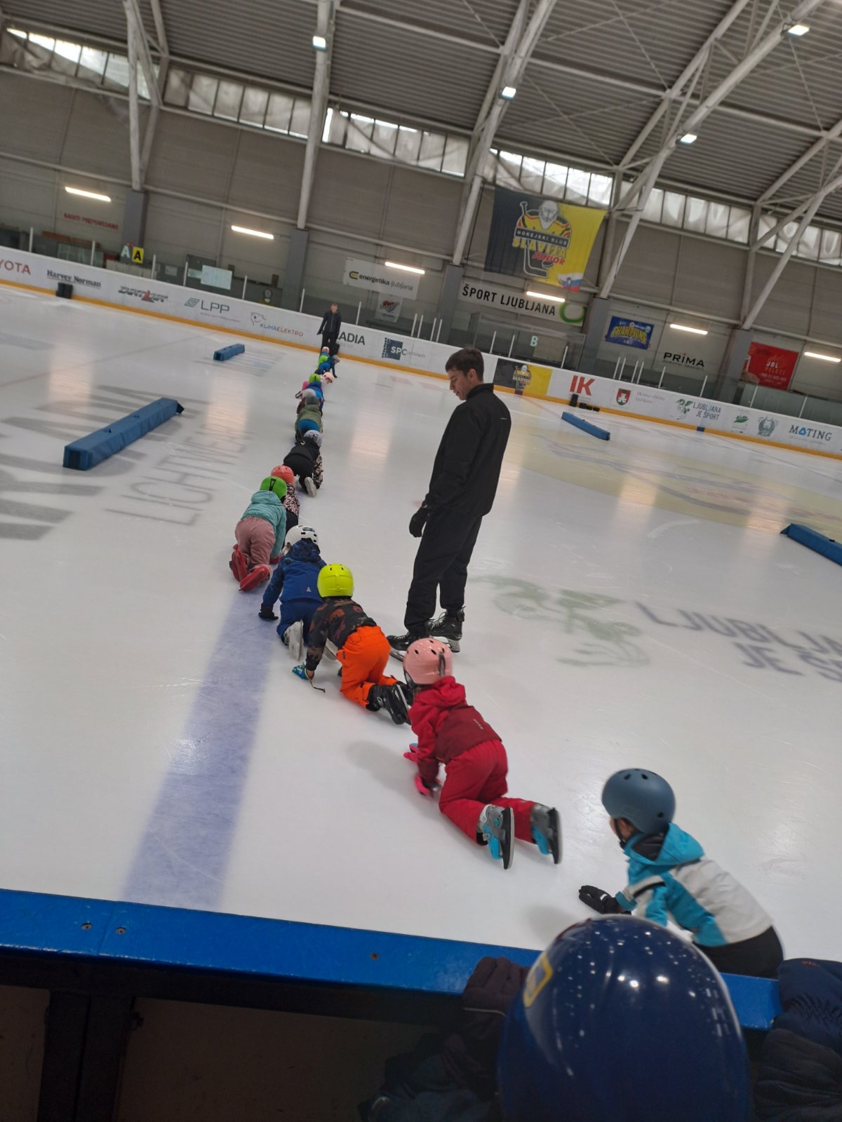 ”Ježki, Snežinke, Srne, Čebelice in Sovice smo že tako veliki, da si upamo celo na led! Drsamo že skoraj kot pravi drsalci, se igramo igre na ledu in smo vsak dan boljši! Uživamo v novih spretnosti in v tistem prijetnem občutku, ki mu rečemo ponos. Ste tudi vi ponosni na nas?”