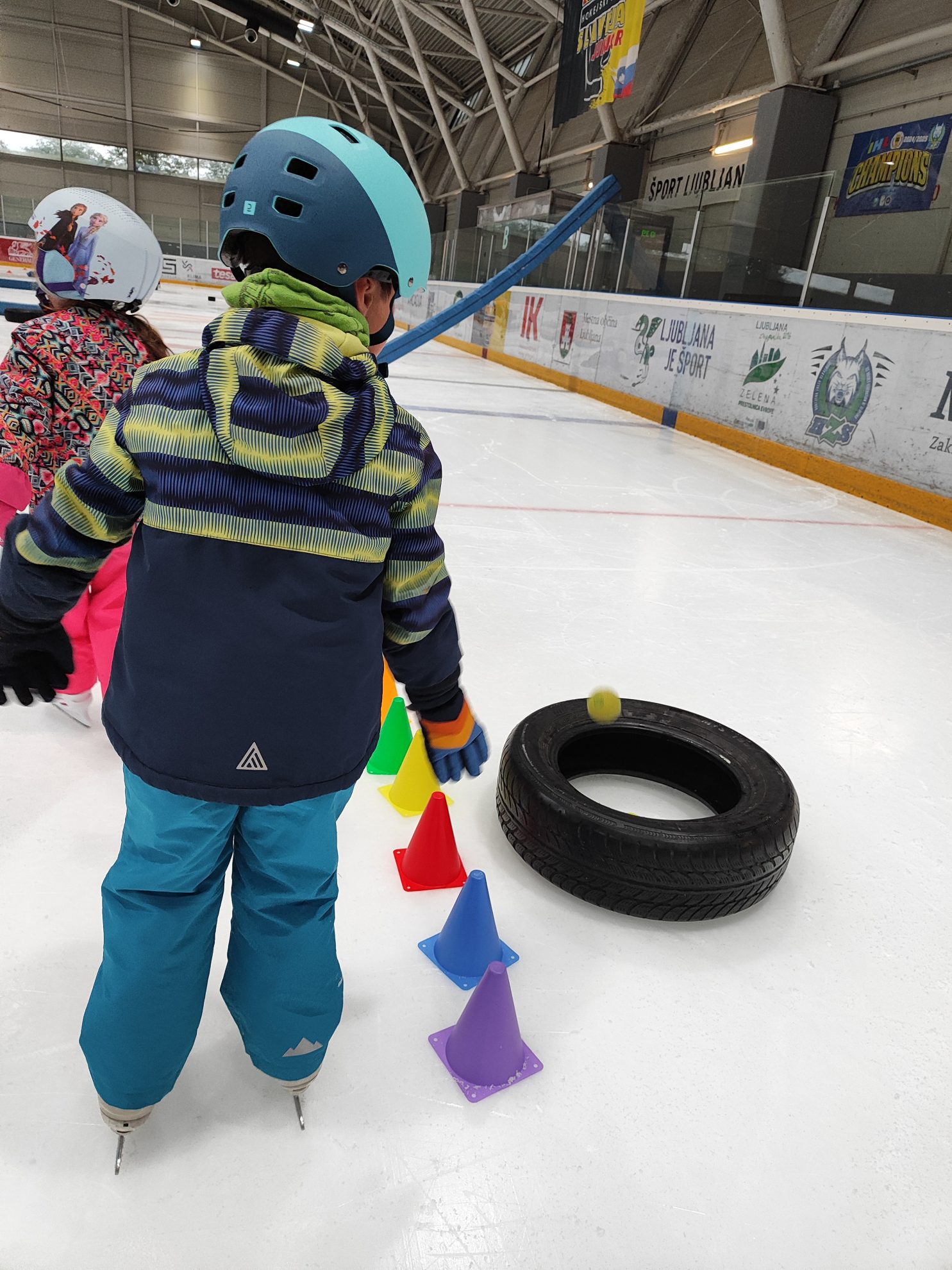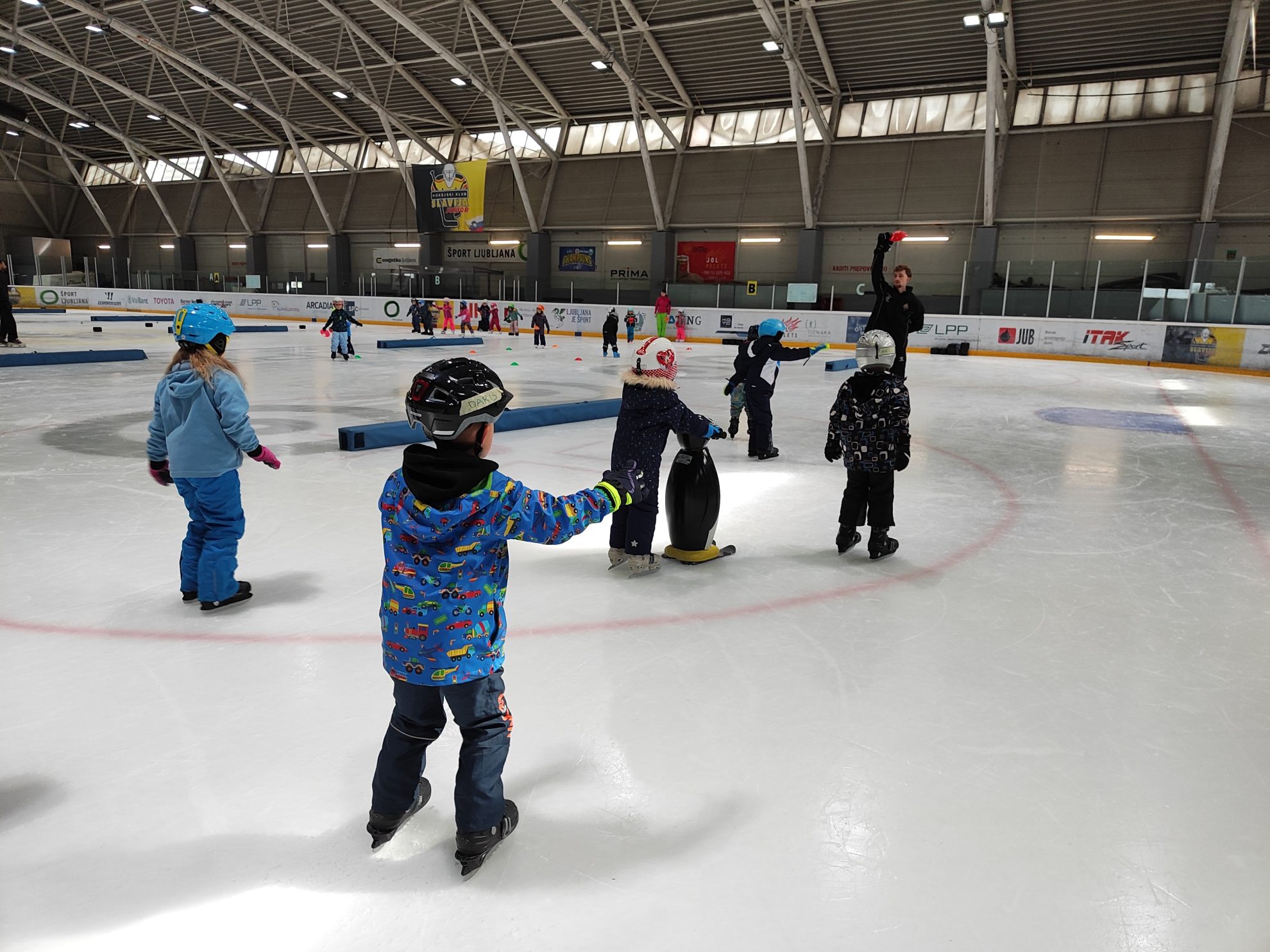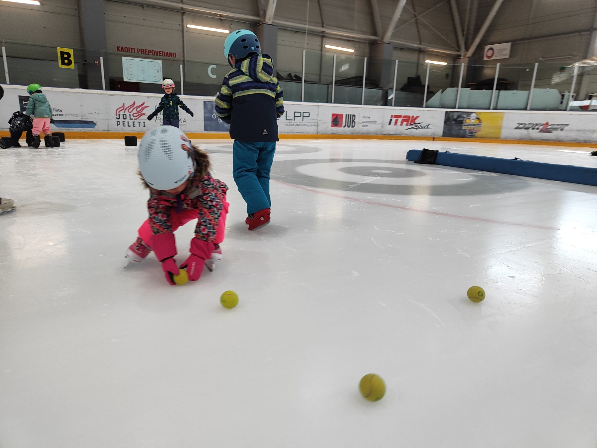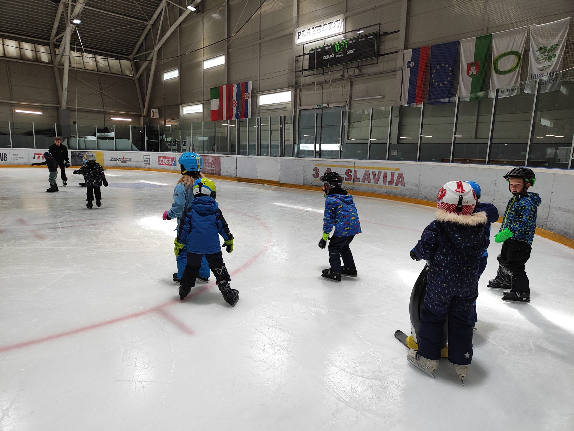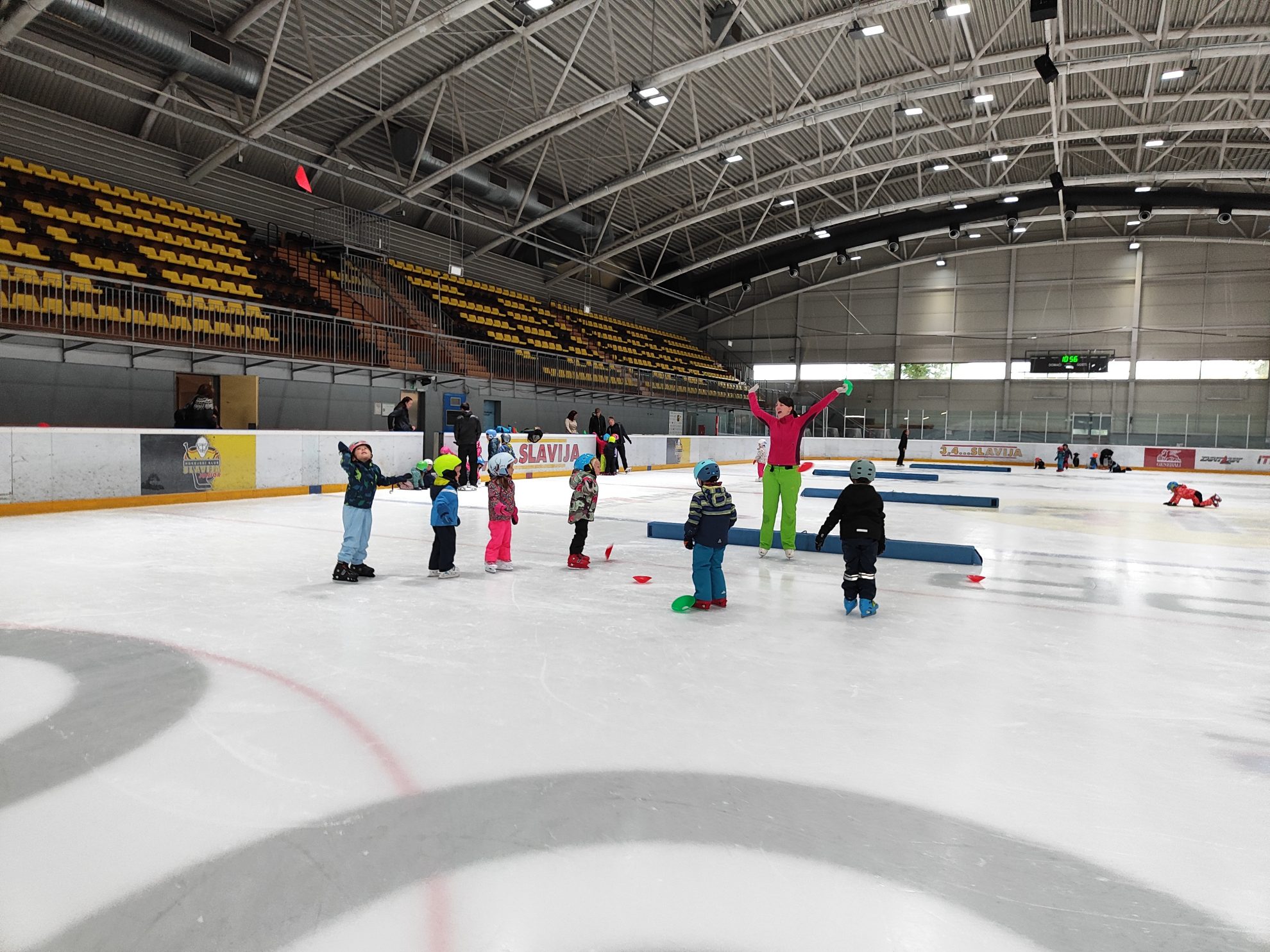”Ježki, Snežinke, Srne, Čebelice in Sovice smo že tako veliki, da si upamo celo na led! Drsamo že skoraj kot pravi drsalci, se igramo igre na ledu in smo vsak dan boljši! Uživamo v novih spretnosti in v tistem prijetnem občutku, ki mu rečemo ponos. Ste tudi vi ponosni na nas?”