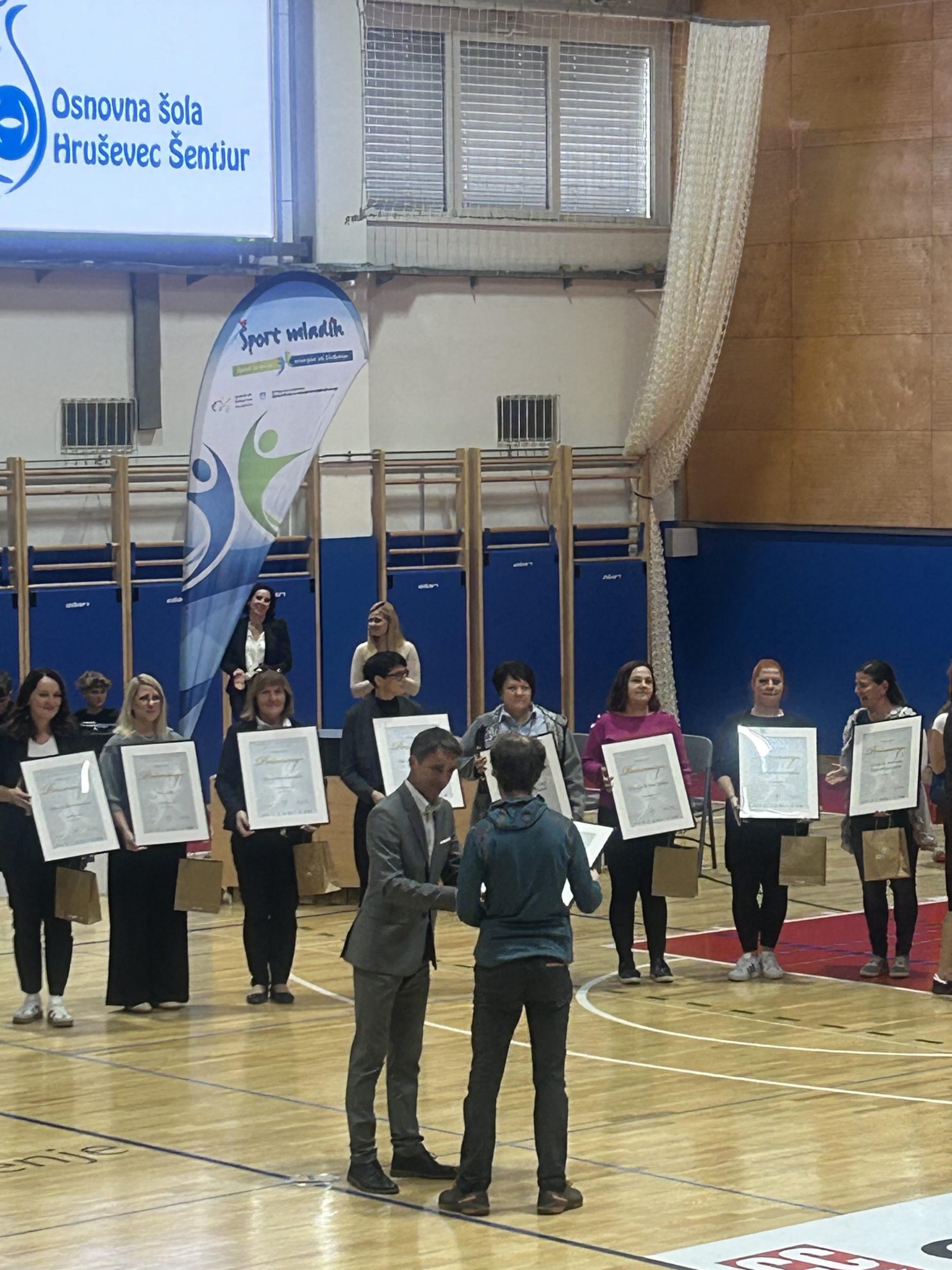 V ponedeljek, 20.10.2025, sta se strokovna delavca našega vrtca udeležila slavnostne podelitve priznanj najbolj športnih vrtcev in šol, ki je potekala v Šentjurju pri Celju.
