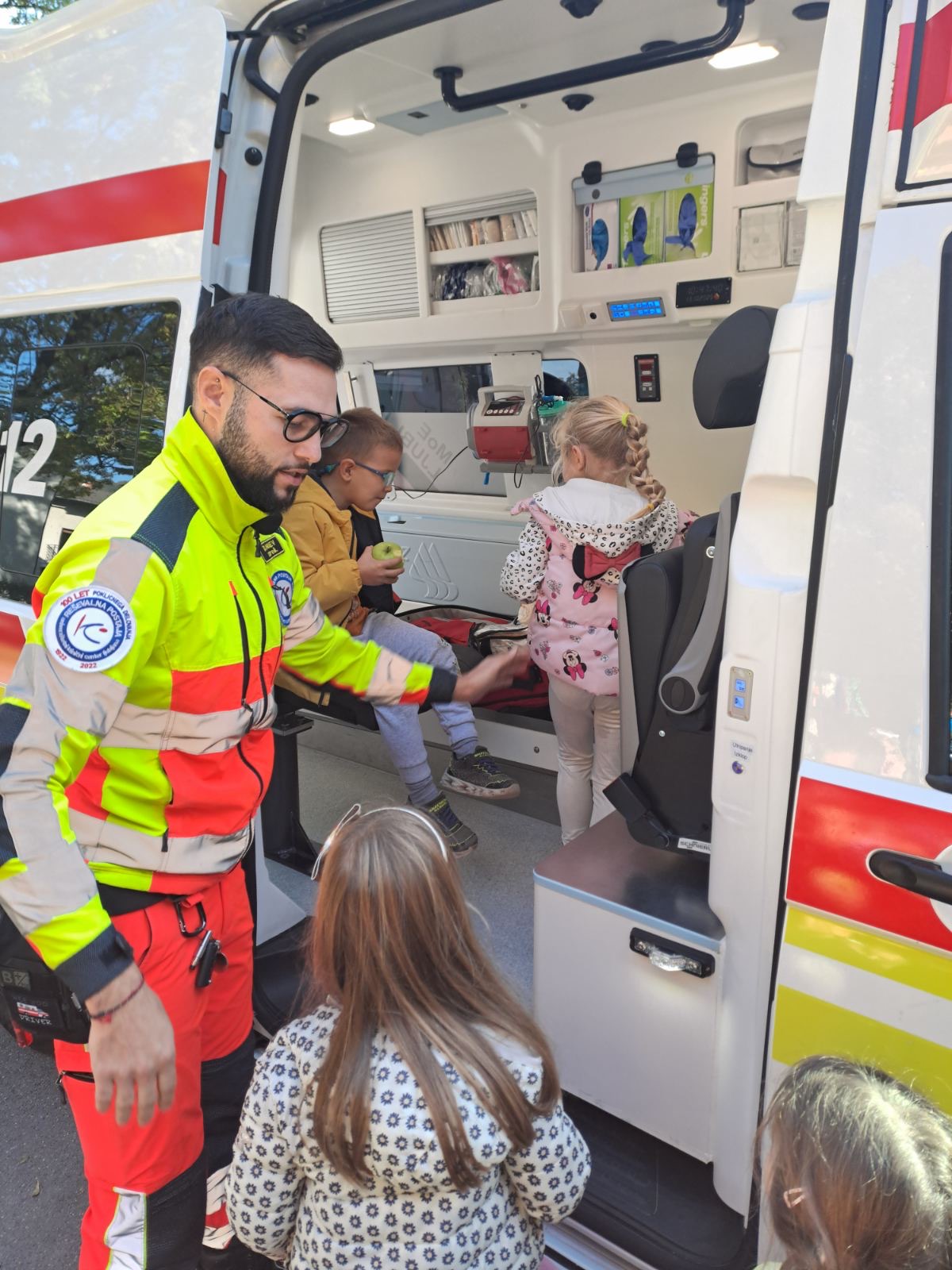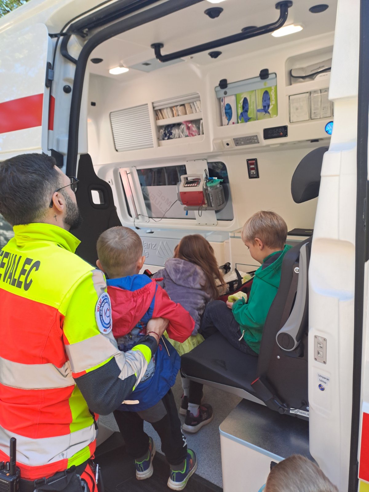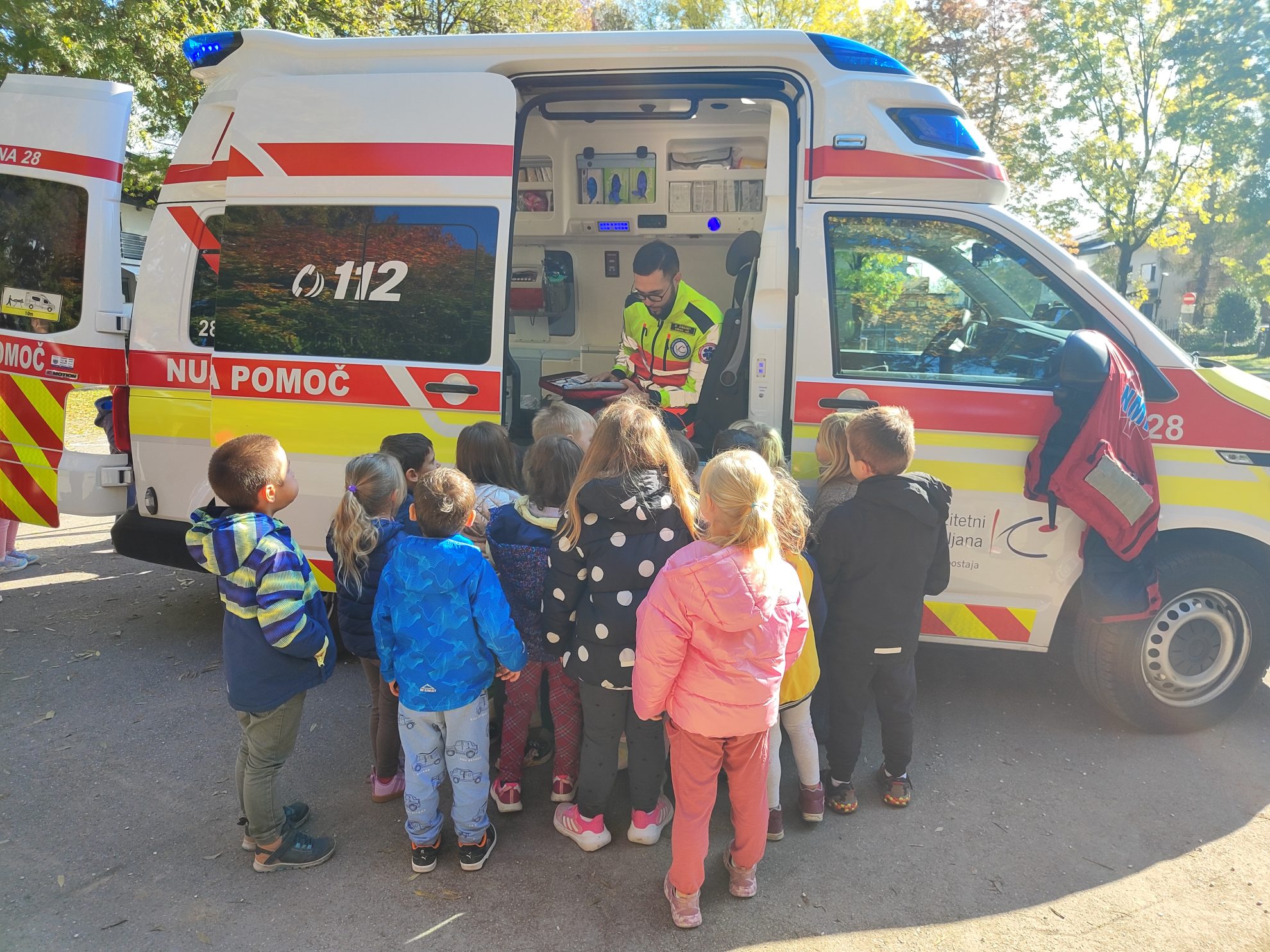Pokazali so nam svoje vozilo in vse naprave. Dobro smo si ogledali vse lučke. Povedali so nam, kako pomagajo ponesrečencem in odgovarjali na naša vprašanja. Zdaj vsi prav dobro vemo, da na pomoč pokličemo na 112!