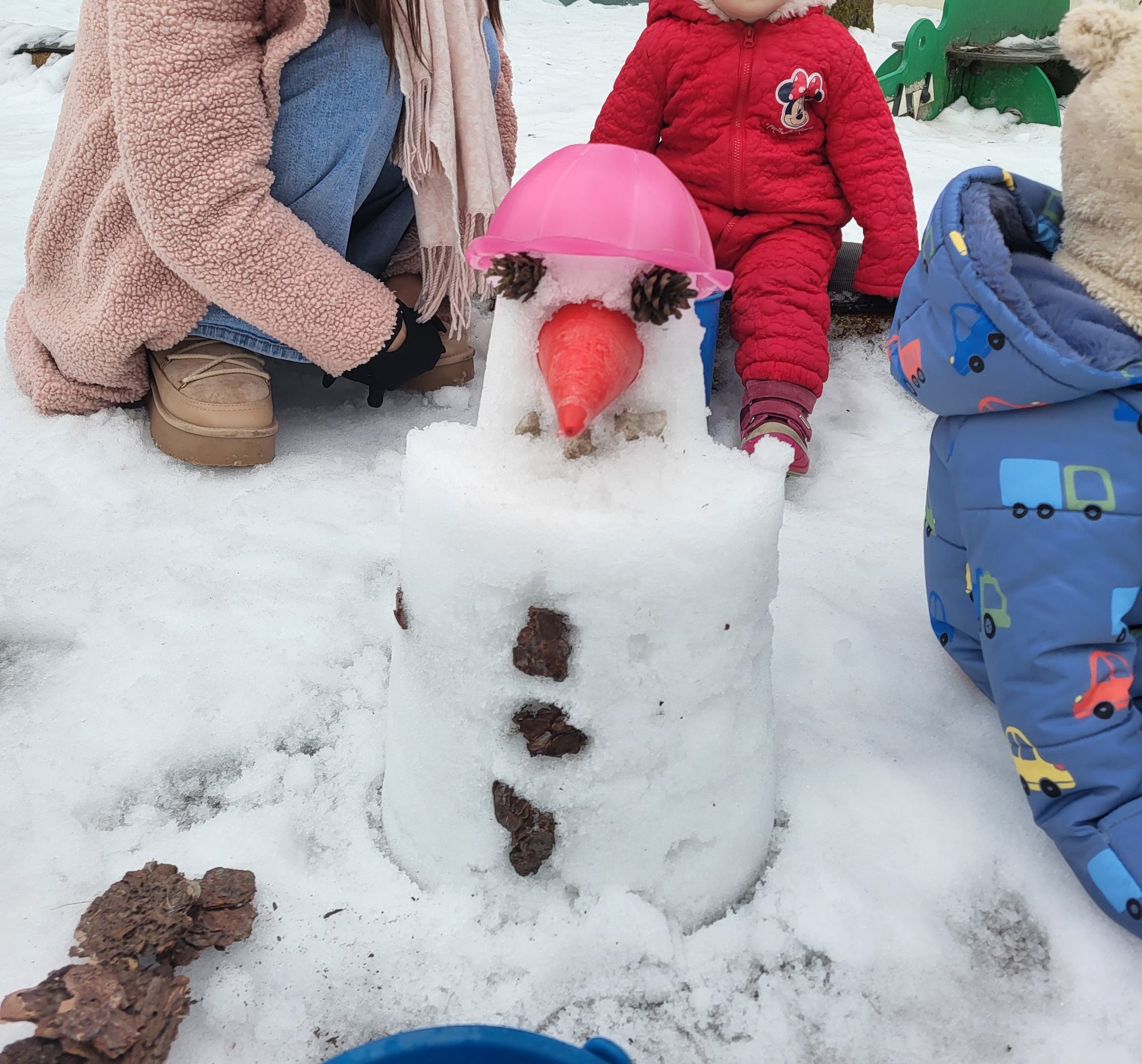 Zima nas je razveselila s snegom, kar so nekateri izkoristili za različne gibalne dejavnosti – valjanje po snegu, sankanje, kotaljenje po hribu, tek na smučeh,… drugi pa so raje raziskovali, ustvarjali in se igrali.  Pri nekaterih dejavnostih pa so se nam priključili tudi starši.